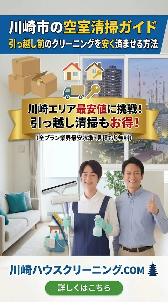 ここでは、川崎市で空室清掃(引っ越し前後のクリーニング)を賢く安く済ませるコツと、地域密着の「クレアップ横浜」の最安値水準の料金体系をわかりやすく解説します。